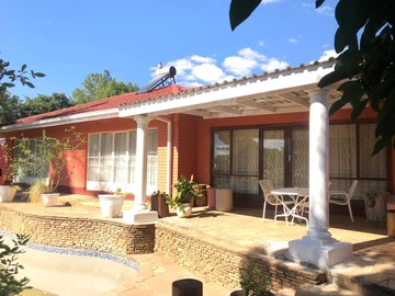 A five bedroomed house with main ensuite, two dining rooms, lounge, fitted kitchen, three bedrooms, carport, walled and gated, borehole, 10000L water tank, solar geyser, 5kv solar system, wooden floors, paved