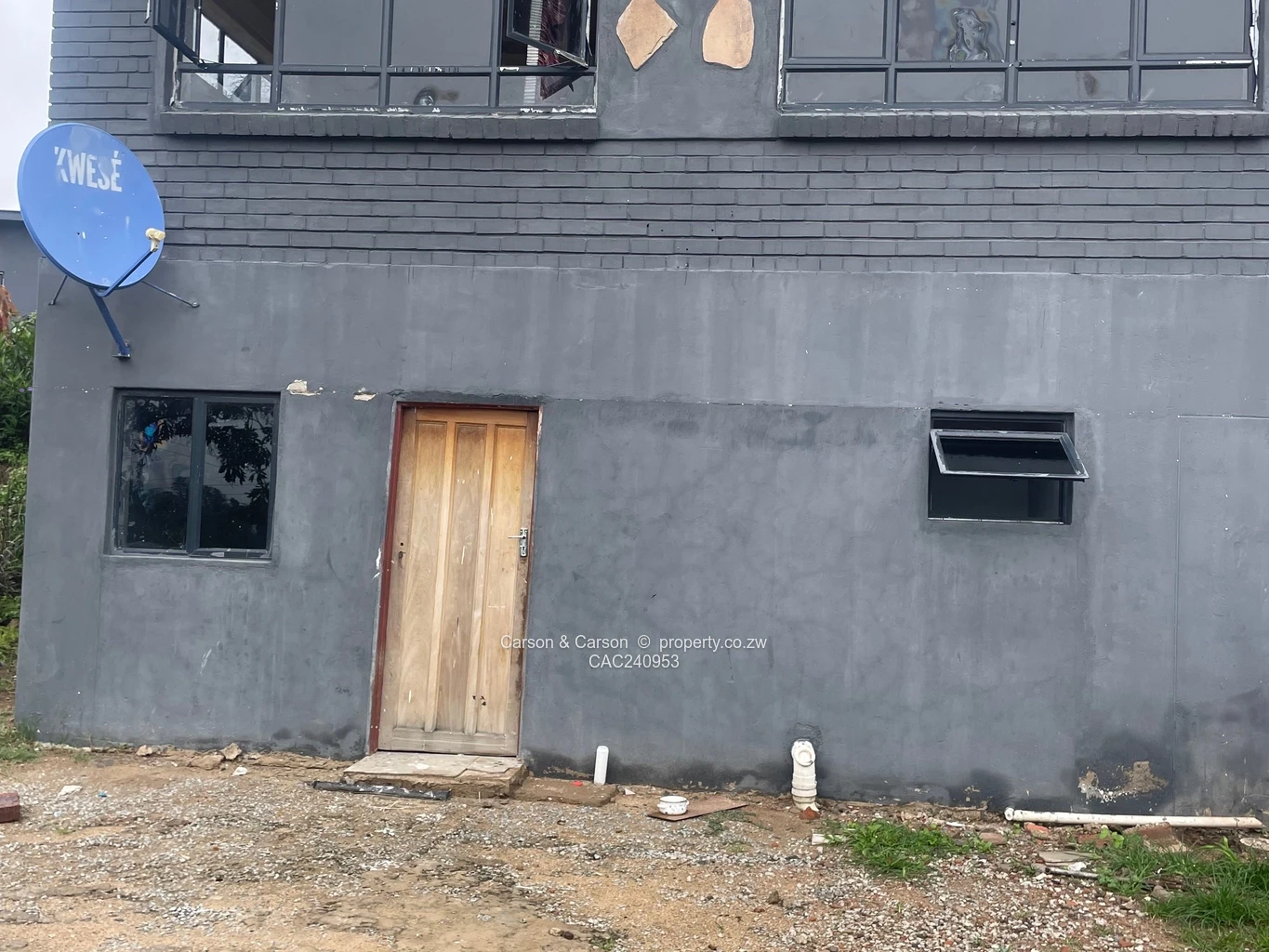 Double Storey comprising of 4 beds , 2 ensuite with one not complete needs fee touch ups Spacious dining and Lounge with fireplace fitted kitchen with pantry. 2 guest separate bathrooms, Outside Garage turned into 3 rooms, walled and gated . Borehole and 5000litre tank.