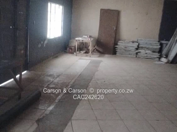 Prime commercial/industrial opportunity in Budiriro, Harare High Density — 1,000 m² of fully fenced land with an existing single-storey warehouse/retail block ideal for wholesale, storage, light manufacturing, workshop or redevelopment. The property features secure chain-link fencing with privacy screening and visible road frontage for easy access and visibility. Onsite improvements include a covered awning above metal entrance doors, a substantial black water storage tank, a broad hardstand yard for loading and parking, and a spacious tiled interior open-plan area suited to racks, assembly lines or retail displays. Solid shell construction with natural light from windows and practical concrete/tiled floors reduces initial fit-out costs. Perfect for entrepreneurs seeking a ready-to-use industrial base or investors looking to refurbish and maximize rental income in a busy high-density suburb. Competitive investment — arrange a viewing today.