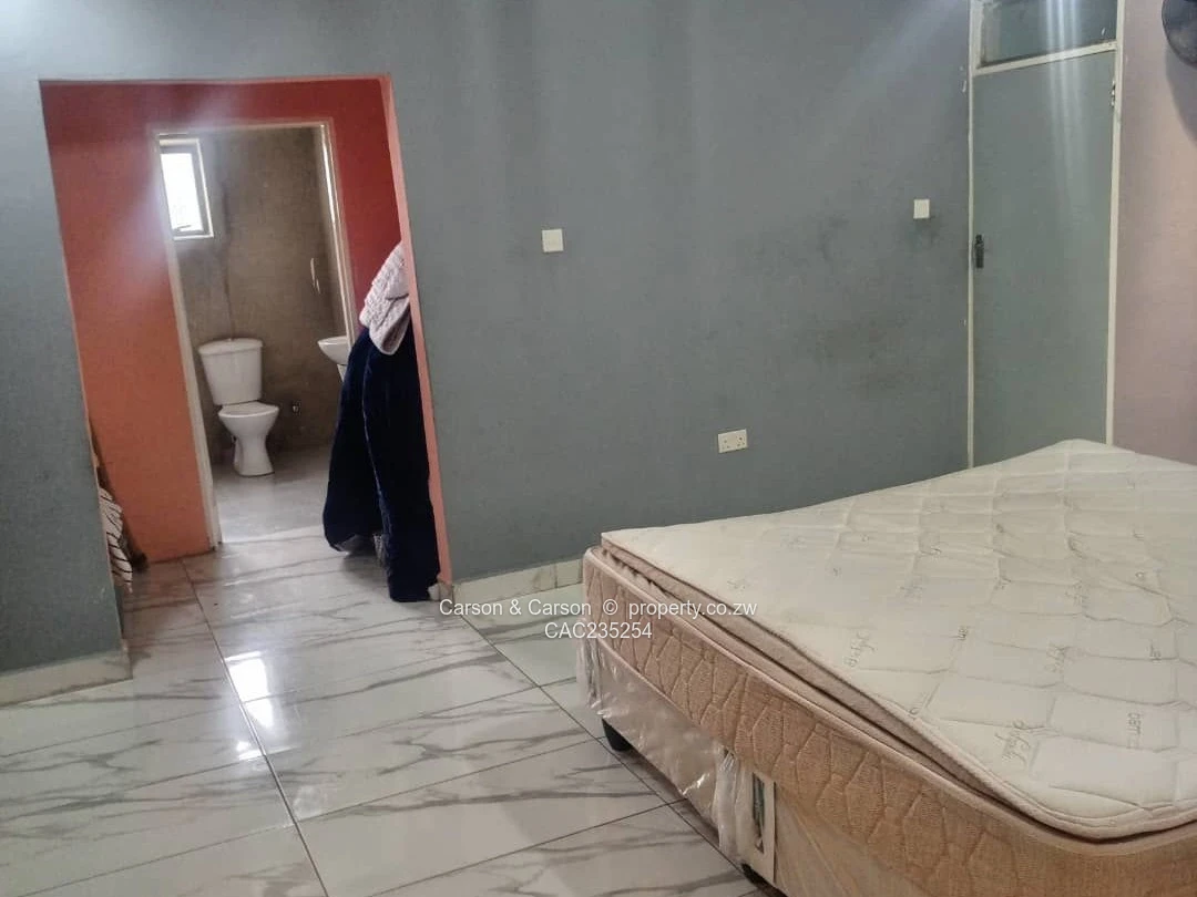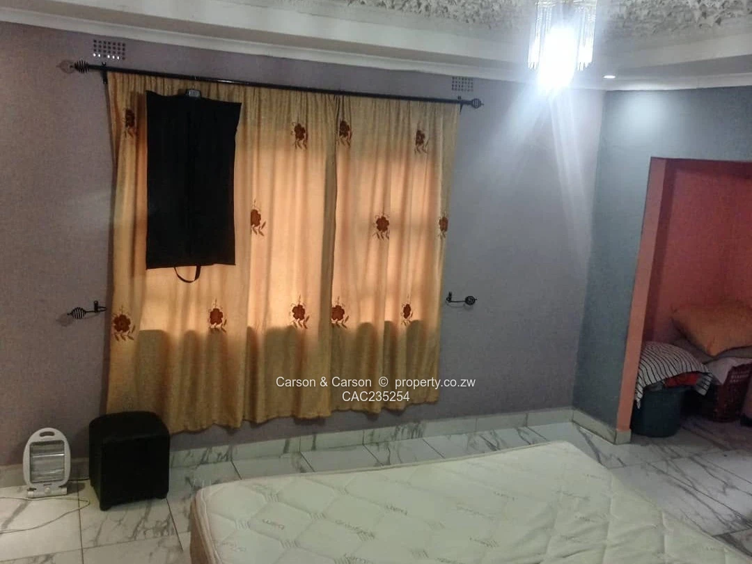 A 5 bedroomed house with main ensuite dining, lounge, kitchen, study room, double lockup garage, toilet, tiled, walled perimeter and a two roomed cottage. The property is measuring 2950 square meters and 3km for Mvama grab this wonderful opportunity for investment or for your family home.
