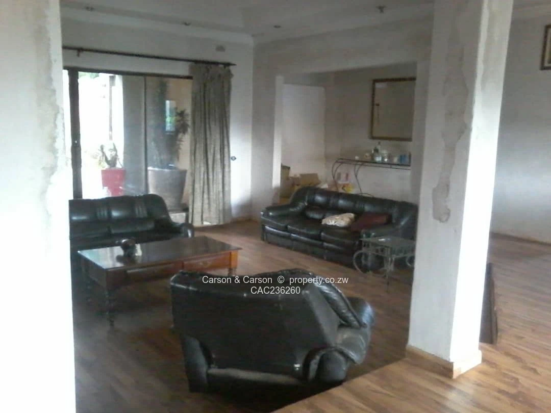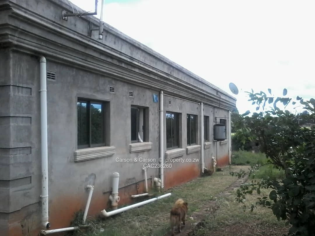 Solid single-storey family home on a generous 3,800 m² stand in Kambanji, Harare North — 3 bedrooms, 3 bathrooms and approximately 1,000 m² of built area offering excellent scope for renovation or an instant family move-in. As seen in the photos: the house sits behind a high brick boundary wall with a green roof and a large curved concrete terrace/patio ideal for entertaining. The mature garden has level lawns, established trees and room for a pool or vegetable plot; a borehole with storage tank provides reliable independent water supply.