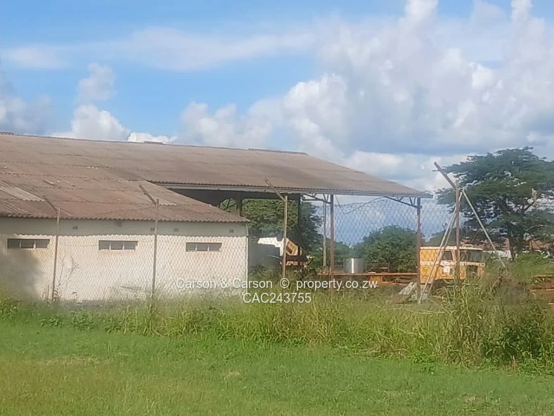 Commercial property for Sale in Chegutu measuring 1.5 hectares with 300 m² covered workshop, 5 offices, toilet, kitchen. This secure industrial property sits on a generous 1.5 hectare stand and includes a 300 m² factory/warehouse with high corrugated iron roof, concrete floor and internal shelving and work bays — ideal for storage, light manufacturing or agro-processing. As seen in the photos, the compound is protected by brick pillars with metal sliding gates and a perimeter fence; there is a covered open-sided shed for vehicle loading/unloading and exterior hardstand space for trucks and equipment. The white-painted office/ancillary block has barred windows and basic sanitary facilities in place. A reliable onsite borehole provides water security for operations or expansion. Mature grassed areas allow room for additional workshops, silos or yard layout customization. Well suited to entrepreneurs seeking an established, secure industrial site in Mashonaland West with immediate practical infrastructure. Title deeds available just 2km away from the Chegutu CBD. Contact for viewing and price details.